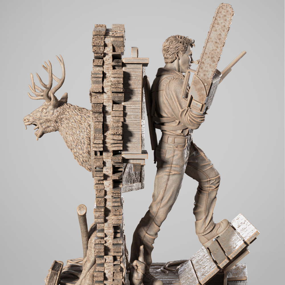 Ash figurine sculpture is a highly detailed, three-dimensional representation of Ash Williams, the iconic protagonist from the Evil Dead franchise. Known for his chainsaw hand, boomstick, and witty one-liners, Ash is a fan-favorite character in the horror-comedy genre. This figurine captures his rugged, battle-hardened appearance and charismatic personality, making it a must-have for Evil Dead fans and collectors.