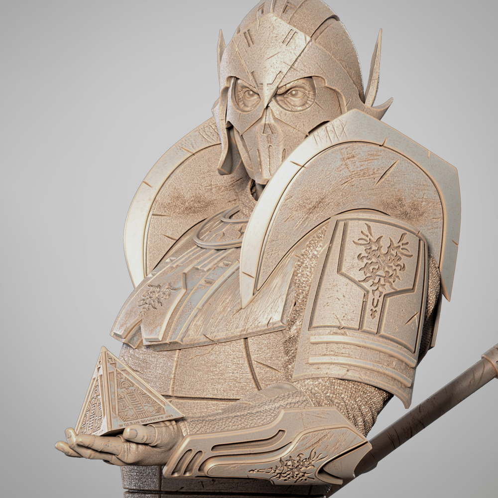 The sculpture would capture Darth Bane in his full Sith regalia, emphasizing his menacing and powerful aura. The design would reflect his status as the founder of the Rule of Two and a master of the dark side of the Force.