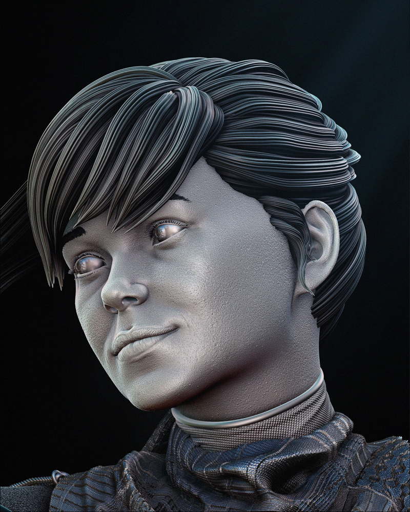 Kitty Pryde is often depicted with a determined or thoughtful expression, reflecting her intelligence, bravery, and resilience. Her face is youthful and expressive, capturing her likeness from the comics.
