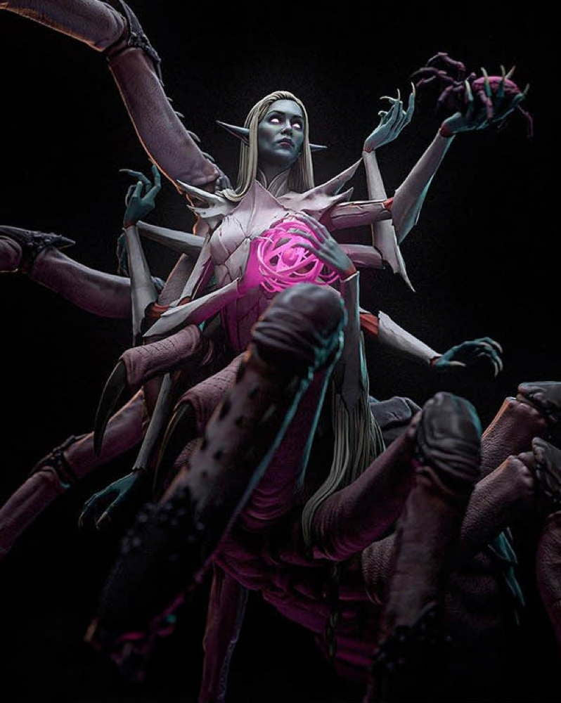 A sculpture of Lolth, the Demon Queen of Spiders from Dungeons & Dragons lore, would capture her terrifying and majestic presence.
